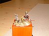 Tibor barátunk a figurafestés fortélyait mutatta be számunkra, és hasznos tippekkel, ötletekkel látta el a téma iránt érdeklődőket. Így a rendhagyó klub foglakozás alkalmával lépésről-lépésre sajátíthattuk el a mesterfogásokat. Külön őröm volt számomra, hogy sok ifjonc jött el, akik szinte itták a szavait, és nagy lelkesedéssel (bevallom, hozzám képest sokkal több sikerrel) festették a figurákat. Igaz, hogy eddig nem is volt sok közöm a figurafestéshez. De a hihetetlen nyugalommal és kedvességgel megáldott mester olyan kedvet ébresztett bennem, hogy egyből bevásároltam Zsolt barátunk készletéből, aki hozott magával néhány „elfekvő” darabot. Na képzelhetitek… engem speciel a napóleoni idők figurái tetszenek. De találkoztam Petőfit ábrázoló makettel, egy magyar juhász figurával, és egy, a megboldogult néphadsereg tisztjét megformáló figurával is, aki egy kicsit talán viccesen, jókora hordóhassal van megáldva. Naná, hogy nem bírtam otthagyni…